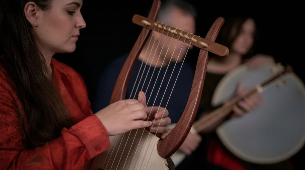η Σόνια Χαραλαμπίδου (αρχαία λύρα),